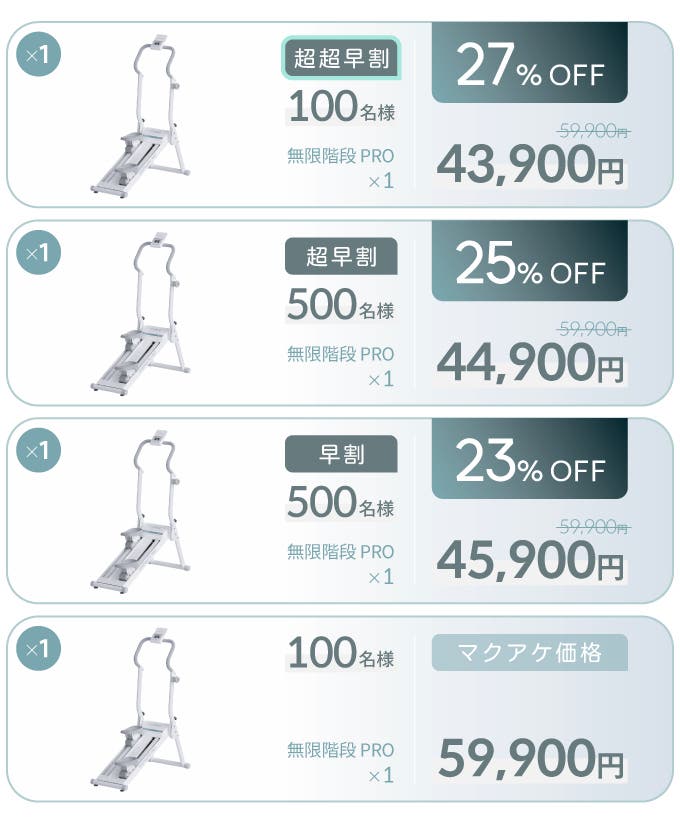 「Makuake(マクアケ)」は、実行者の想いを応援購入によって実現するアタラシイものやサービスのプラットフォームです。このページは、 プロダクトカテゴリの 「【寒い日も徒歩0分】16段階×3段階傾斜で、自宅をジムに変える『無限階段PRO』」プロジェクト詳細ページです。
