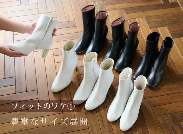 より自分の足に合った1足を選んでいただけるよう、フィットブーツでは足長(足の長さ)を21.5cm~25.5cmまで9サイズと豊富に揃え、サイズが小さめや大きめの方にも対応しています。