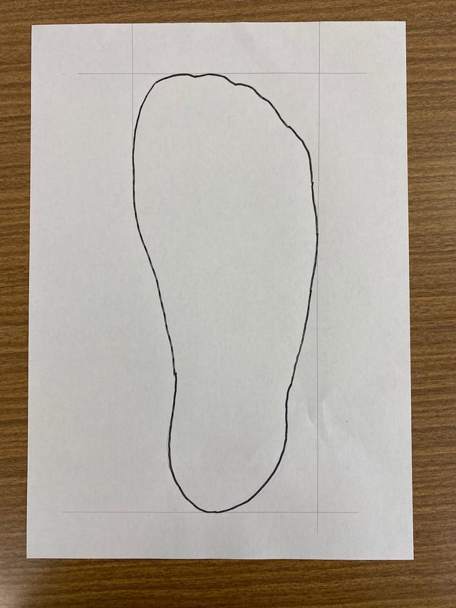 コピー用紙に足を乗せ、足の外径をなぞります。