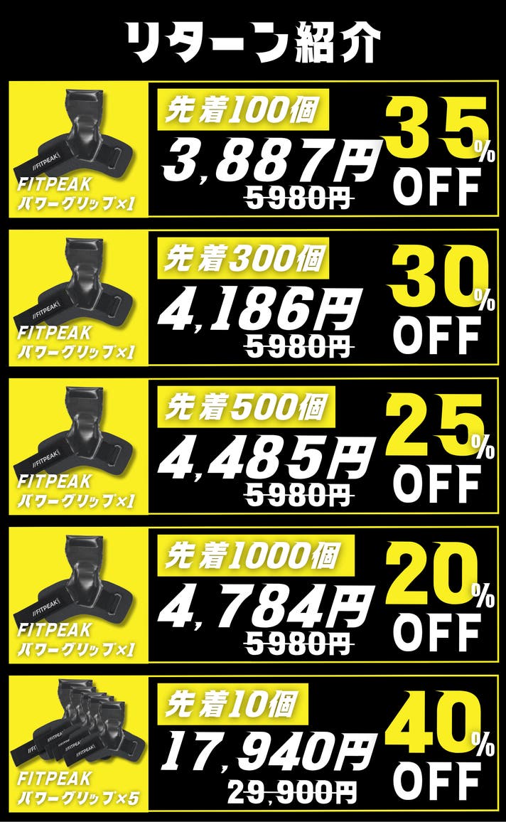 【まとめ割】40%OFF FITPEAKパワーグリップ×5