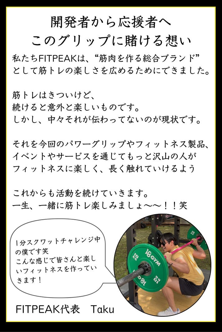 最後に、私からのこのパワーグリップとFITPEAKにかける想いです↓