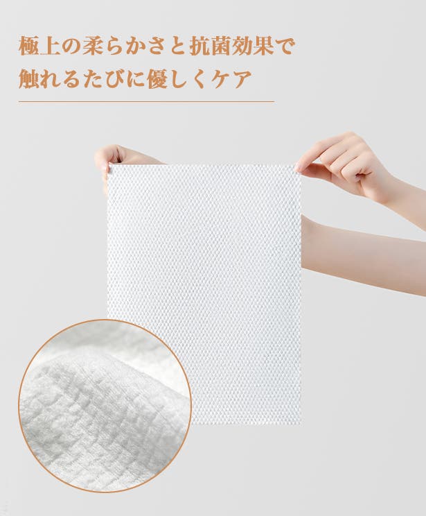 厳選されたエコ素材から生まれた使い捨て圧縮タオルは、超ソフトな抗菌ファイバーでできています。温めることで、さらにふんわりと、まるで羽毛のような肌に優しいタッチに。