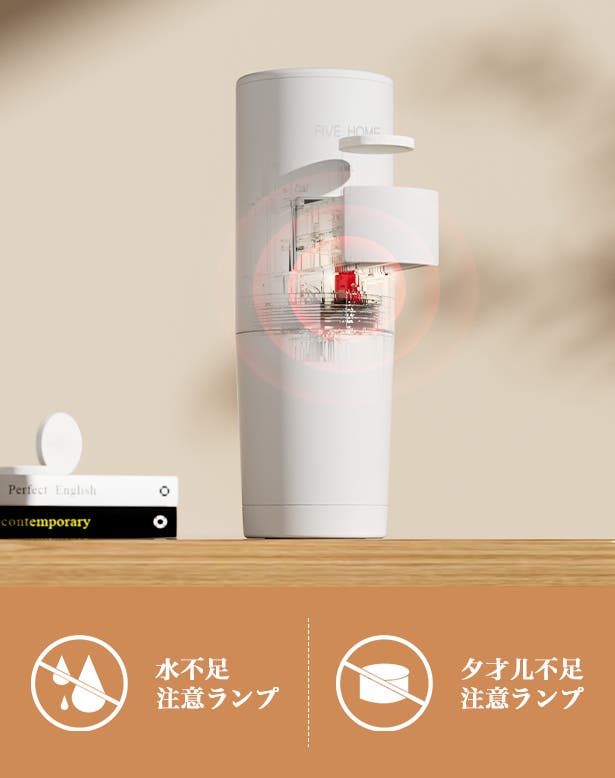 高精度の赤外線センサーを内蔵したFIVE HOMEは、タオルの残量をリアルタイムで正確に感知します。