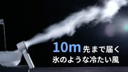 - 10m先まで届く超強風と超伝導アルミ冷却技術で、灼熱の屋外でも体感温度を一瞬で下げる。