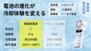 - 従来品の進化版!革新の準固体電池が、安全性と最長10時間の連続冷却を両立。