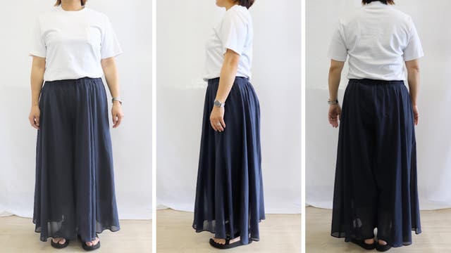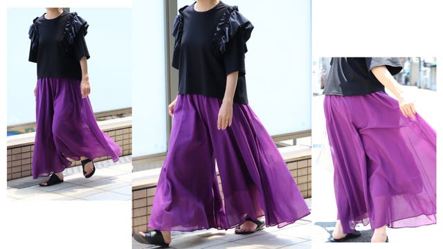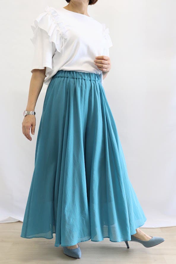 色味・シルエット 共にキレイで、スカートに見えて実はパンツ!と言う所が気に入っています。