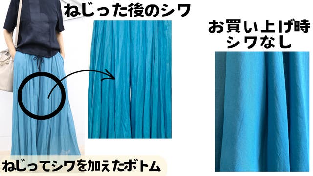 着用モデル:154cm 着用カラー:ブルーグリーン(ねじりシワつき)