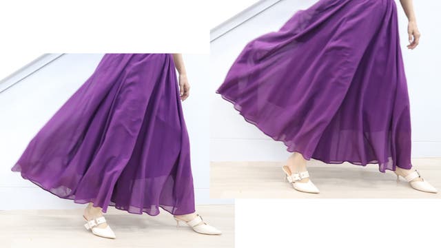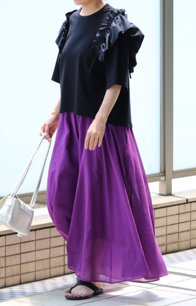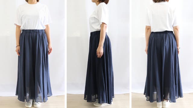 たっぷりフレアーなのに、お腹・お尻 が膨らんで広がる事なく ストンと落ちてくれます。