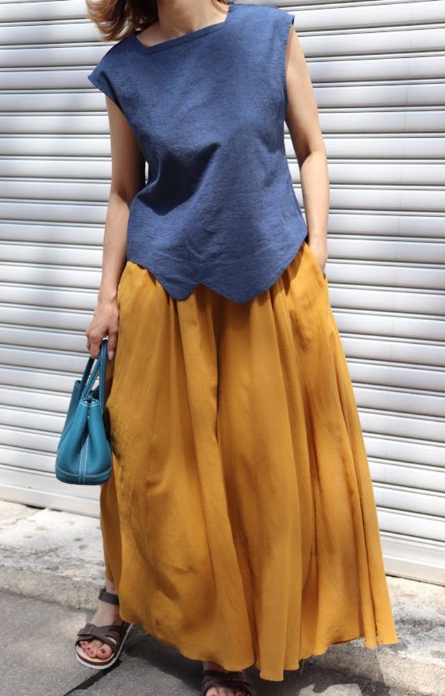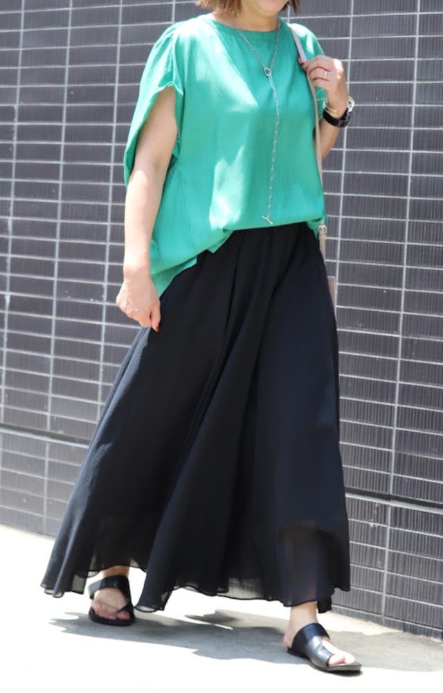 ふわふわ揺れる広い裾から空気がたくさん入って来るので心地良いです。