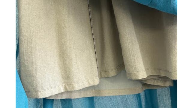 インナーの裾は 肌当たり と 強度を考え 本体よりも太目の三つ折り始末