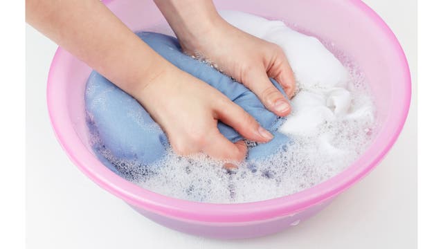 長時間水に浸さないで洗濯後は形を整えて直ちに干して下さい