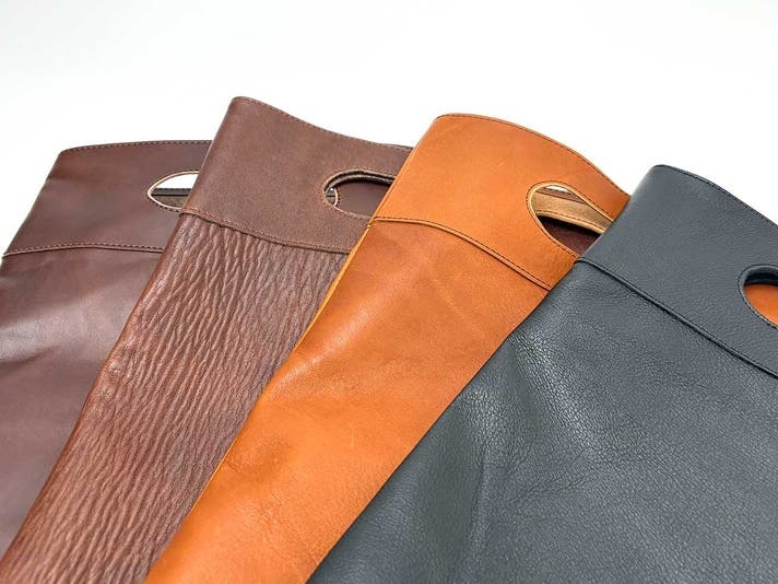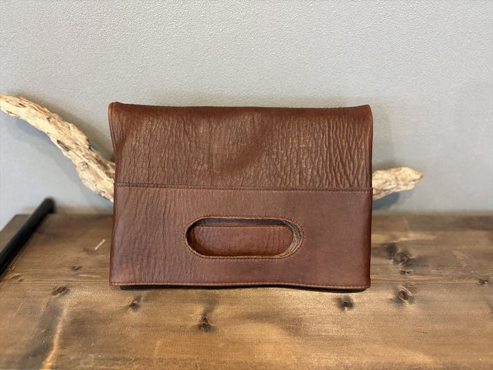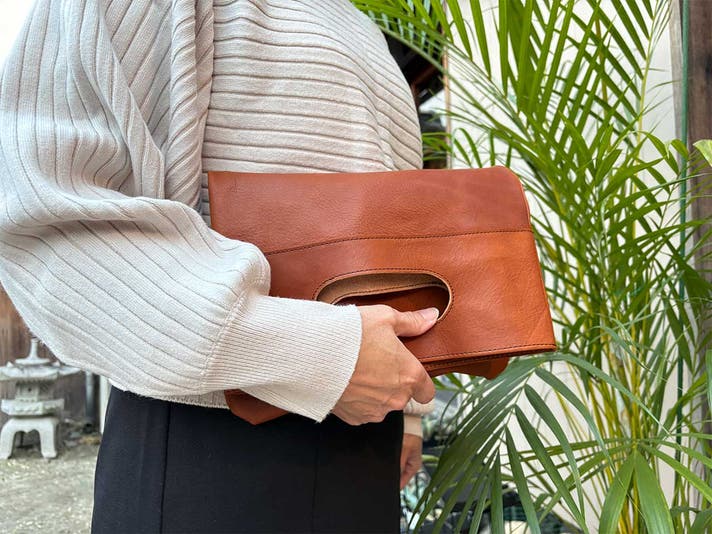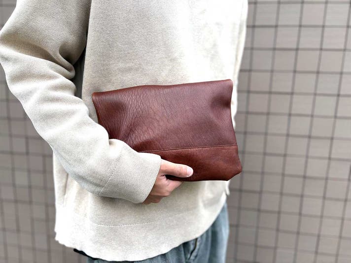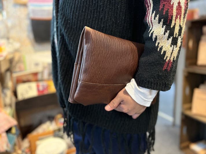 - 【折れて、しなり、馴染む革】 紙袋のように曲がる柔らかさと、本革ならではの深まる艶が共存