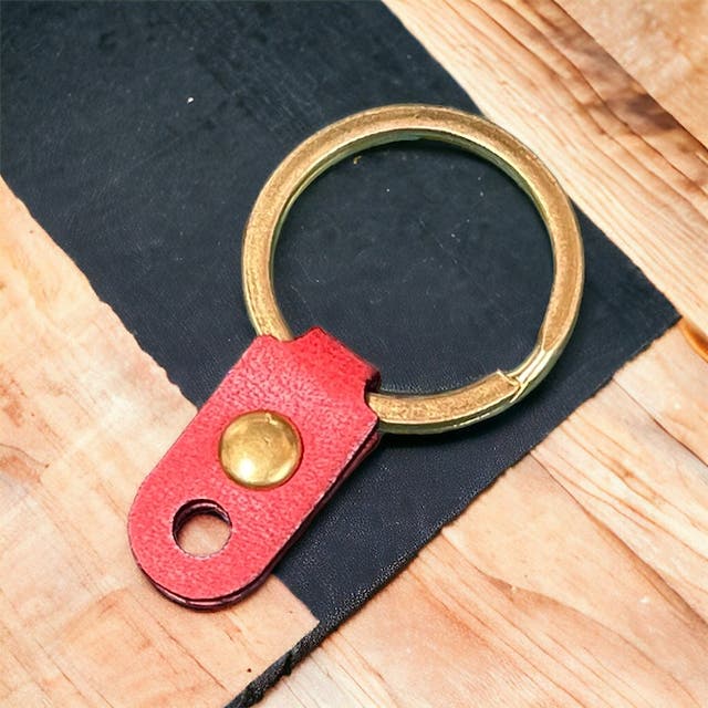 オプションでキーリング500円を追加可能です。キーケースを壁掛けしたりぶら下げたりするのに便利なアイテムです。組ネジに通すだけで簡単につけることが出来ます。