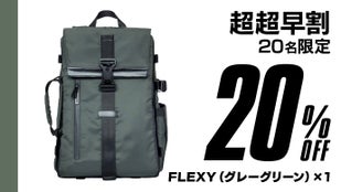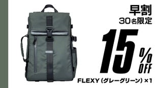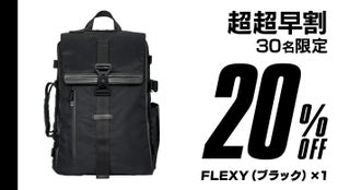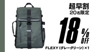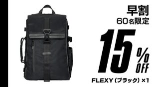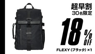 【FLEXY】は、18L・30L・最大42Lへとシーンに合わせて最大230%も容量を自在に変化できる多機能バックパックです。