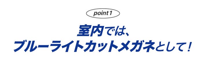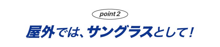 - 室内ではブルーライト、屋外ではUVと近赤外線までカットするクリップオンサングラス