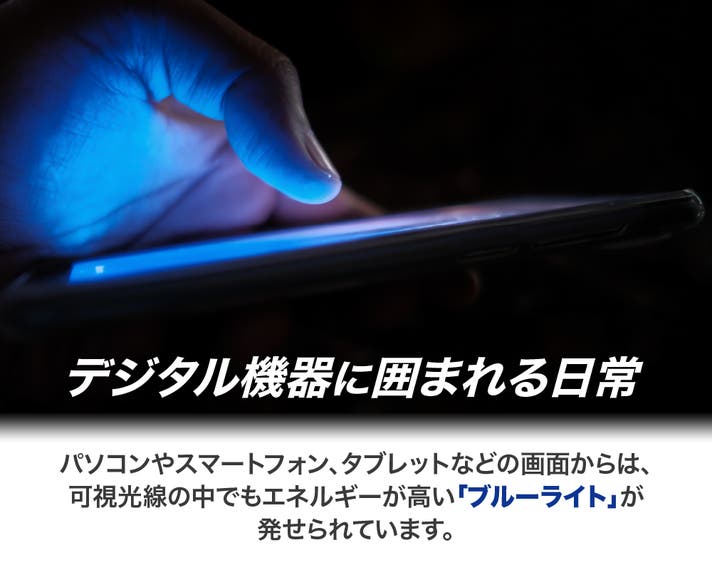 画面を見る時間が長い日常シーンでも、目に届く光の影響を抑えることを目的としています。