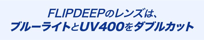FLIPDEEPのブルーライトカットレンズは、デジタル機器から発せられるブルーライトを一定割合カットする設計。