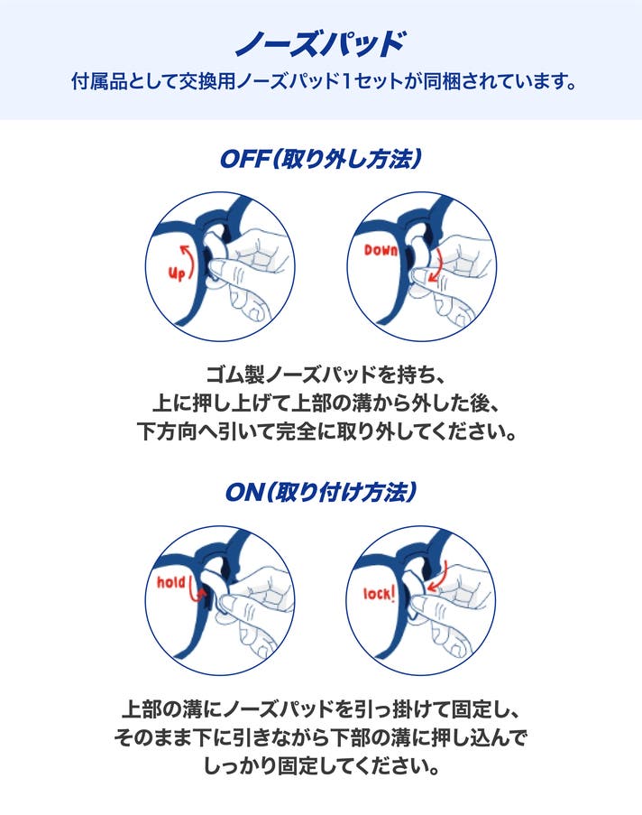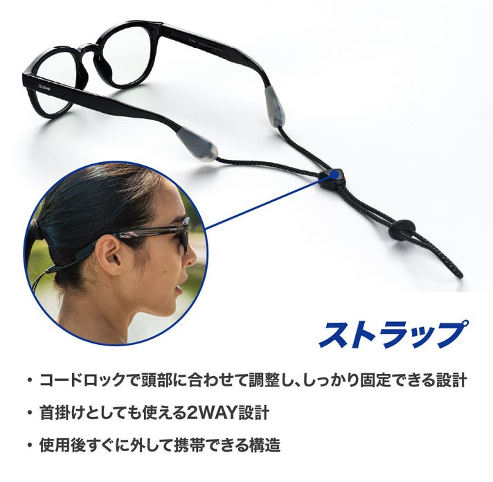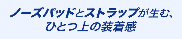 アジアンフィット設計に加え、ノーズパッドとストラップの組み合わせにより、