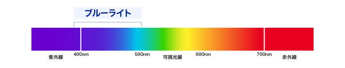 ブルーライトは、可視光線の中でも波長が短く、画面表示やLED照明などから多く発生する光の一種です。