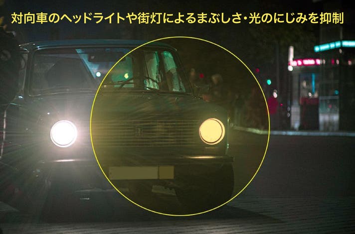 対向車のヘッドライトや街灯によるまぶしさ・反射光に配慮。