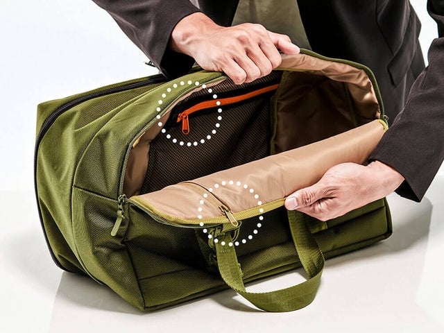 - 特別な3層デザインで、中身を取り出さずに変形可能、しかも容量は変わりません!