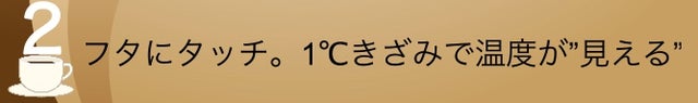 フタにタッチすると、1℃きざみの細かいデジタル温度表示と同時に、3色に変わるフタの周囲のLCDでおおまかな温度もわかります。