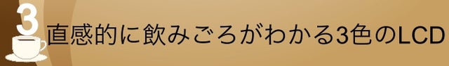 スクリーンでは1℃きざみで飲み物の温度を表示することができますので、猫舌の方は特に手放せない、非常に便利な機能となっています。