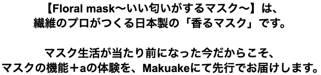 【Floral mask~いい匂いがするマスク~】が、日常のほっと心が和らぐ瞬間をお届けします。どうぞ皆様ご支援よろしくお願いいたします。
