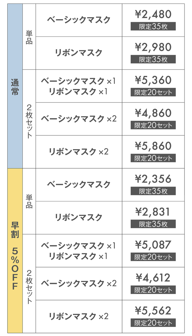 【早割】2枚セット(ベーシックマスク1枚・リボンマスク1枚)