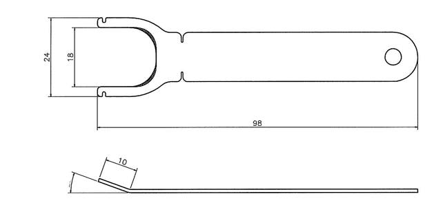 ・サイズ:縦98㎜×幅24~15㎜×厚さ1㎜