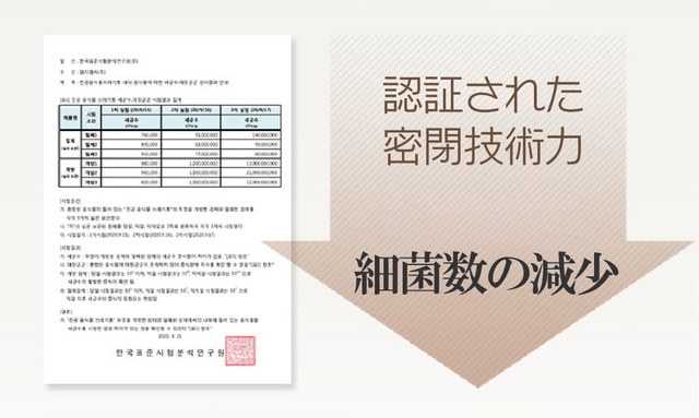 韓国標準試験分析研究院でテストをした結果、フルディック密閉容器に入れた後、室温で保管すると細菌がほとんど消えたことが確認されました。