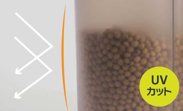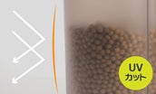 半透明材質の本体は中身が確認しやすく、紫外線カットが可能です。