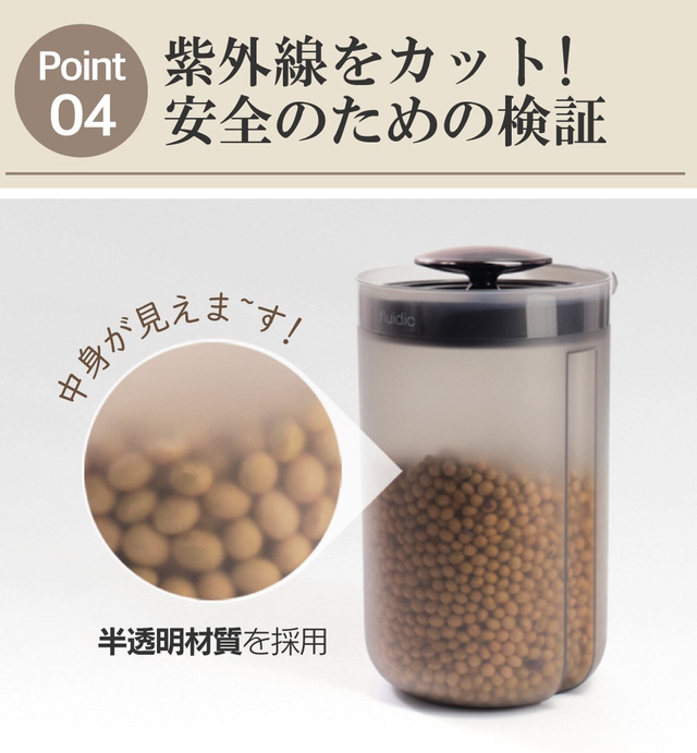 紫外線を浴びると壊れやすく変質する米や豆、ナッツなどはフルディックフード密閉容器に保管してください。