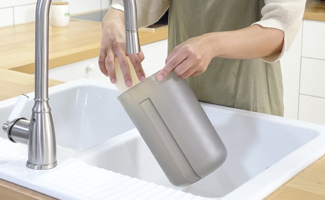 容器洗浄は柔らかいスポンジで軽く洗浄してください。洗浄後は、水が完全に乾燥してから使用してください。