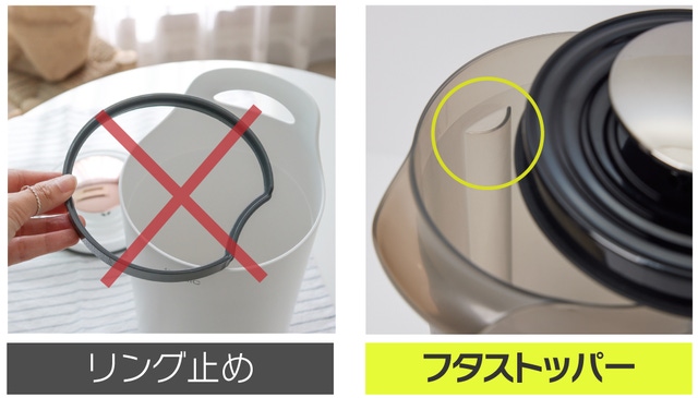 以前はプラスチック製のリングを使った方式だったとすれば、新しくなったフード密閉容器はフタストッパー付きで便利に使えます。