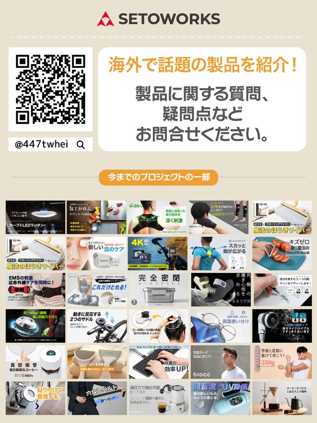 リターン品の配送が完了するまで、弊社はMGMの日本における独占販売権を有する正規代理店です。setoworksは日本の新しい製品を外国にいち早く紹介する事業を始め、海外の新しい商品や直接企画した多様なプロダクト製品を日本国内に紹介する事業を展開しています。多くの応援購入をお願いいたします。