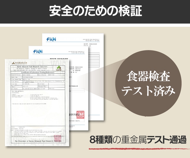 フルディックフード密閉容器は食器検査テストと8種類の重金属成分検査の両方でテストを通過したことが確認されました。