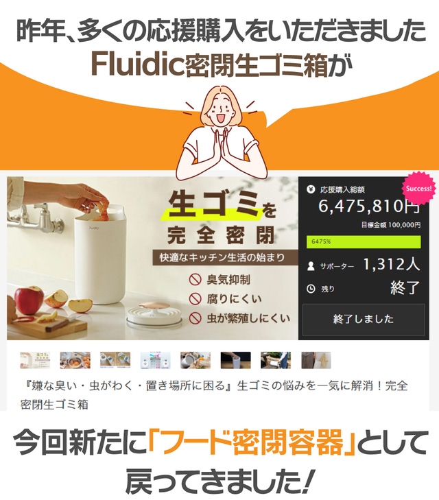 ・この商品を輸入しようと思った理由:前回プロジェクトを行いましたFluidicの生ごみ箱は多くの方々に応援購入をしていただきました。今回新しく開発しましたみっぷ容器も皆様のキッチンをより楽しくする逸品になると考え、プロジェクトを進行することにしました!