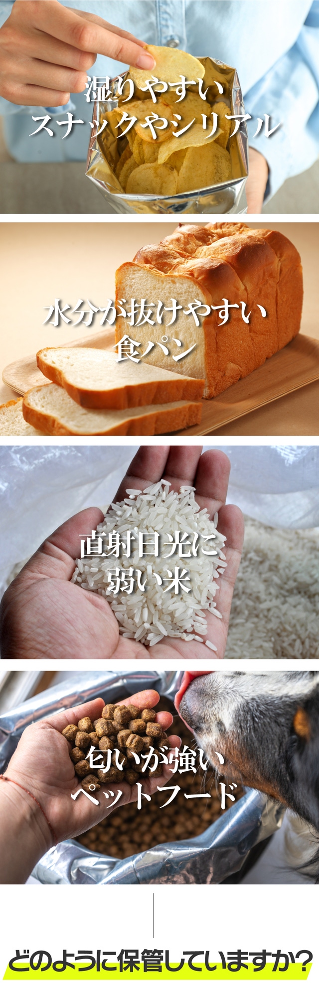 少し経っても湿ってしまうスナックやシリアルをフード容器に入れると空気と接触しないため、サクッとした状態で長く維持でき、逆にしっとりした状態の食パンの場合は、水分を飛ばさないようにしてしっとりした状態の食パンを長く楽しめることができます。