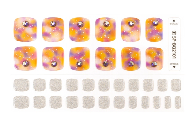 このペディデザインは銀箔と透明キラキラ効果があり、日光の下で宇宙のような光を出します。