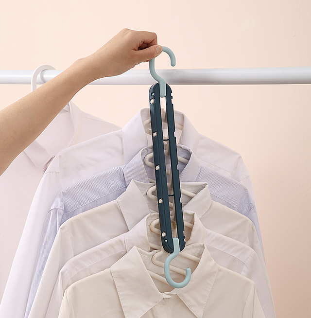 さらにフックの部分を片側だけかけることで、5枚の服を縦に収納することができ、結果タンスやラックの空間を今より約5倍活用することが可能!