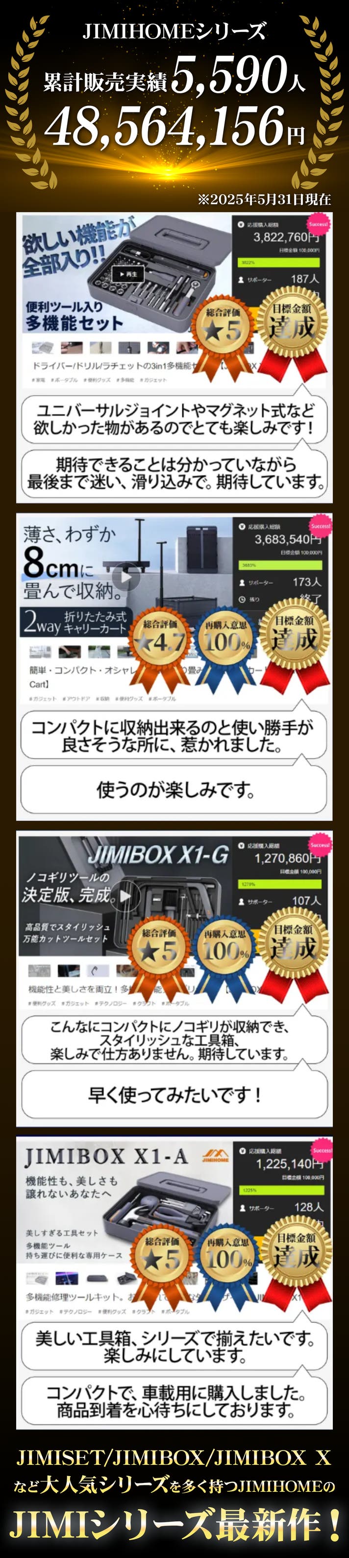 リターン品の配送が完了するまで、BRIGHT DIY (実行者)はJIMIHOME(メーカー)の日本における独占販売権を有する正規代理店です。詳細に関しては、ページ下部のリスク&チャレンジをご確認ください。