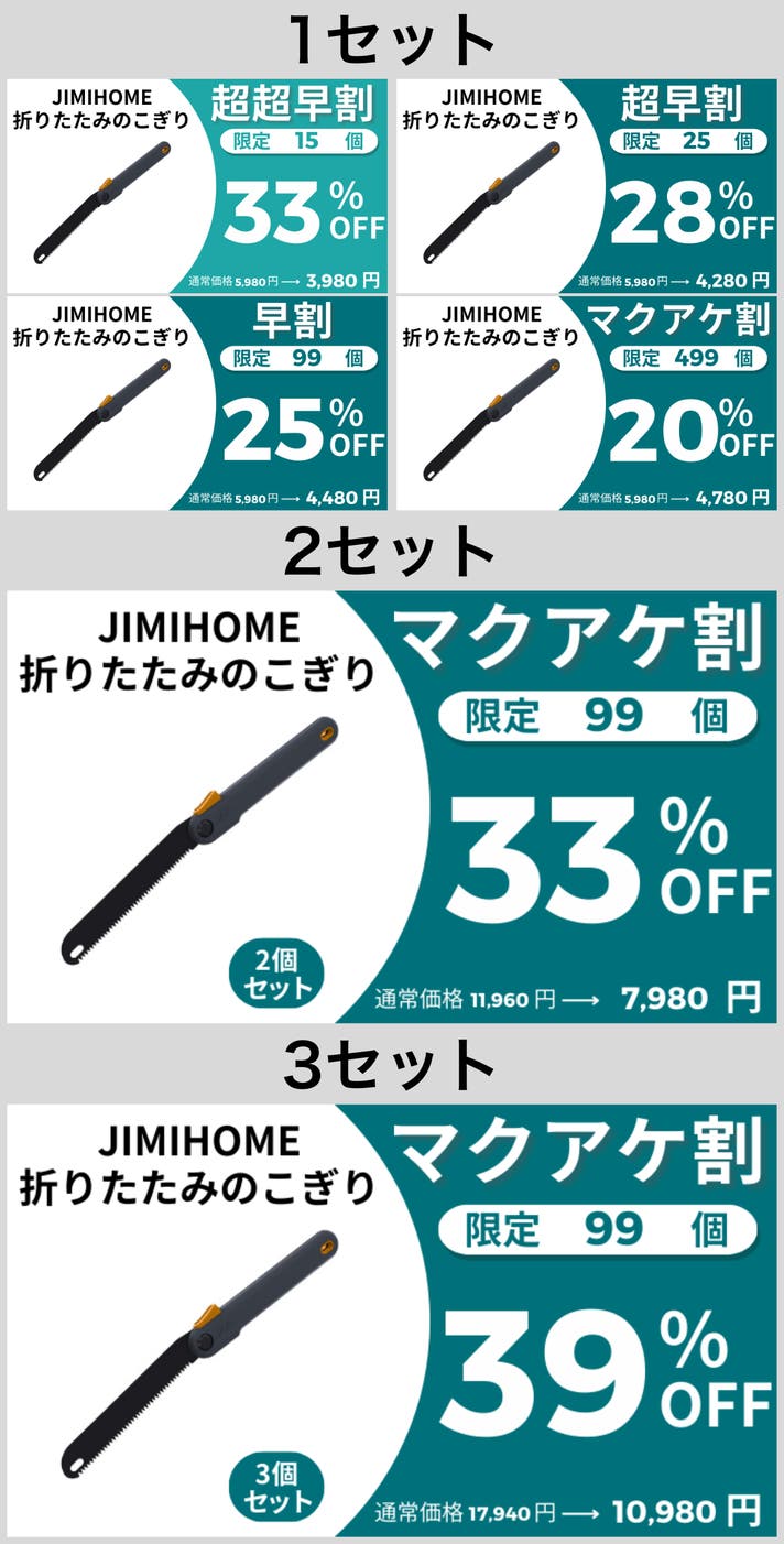 【マクアケ割】JIMIHOME 折りたたみのこぎり ×2セット