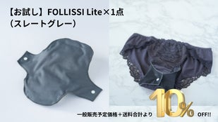 超吸水型サニタリーパッドFOLLISSIは、使い捨てサニタリー用品や吸水ショーツへの不満を解決するために生まれた、洗って繰り返し使える、ショーツに取り付けて使うタイプのサニタリーパッドです。