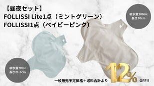 現行モデルのFOLLISSI(吸水量100ml)を多い日用・夜用として組み合わせてご使用いただくのがおすすめです。