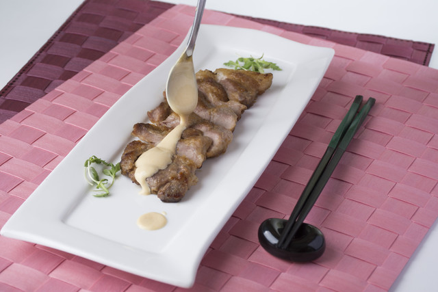 肉をさらに美味しくするソースを作りあげる発想がスタートです。そこにギョーザの肉汁をベースのソースを作る。その形態がマヨネーズになったと言ったところです。「