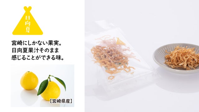 地味だけど美味な食材に様々な味付けをすることは、今まで誰も食べたことのない、味に変えてくれる仲間たちとのコラボレーション。千切り大根と日向夏、千切り大根とお味噌、などなど、今まで食べたことも聞いたこともないような組み合わせで、お口の中をビックリさせるプロジェクトです。ノンフライのオリジナル乾燥加工、味付けはフレーバー仕上げではなく、独自製法で味を染み込ませ、それを乾燥していますのでしっかり味が残っています。