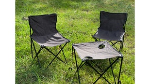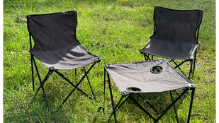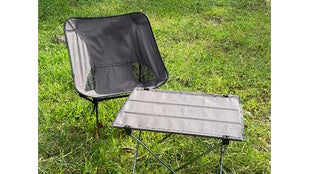 アウトドアレジャーに最適なテーブルとチェア2脚のセットです。3つのアイテムが1つに収まる収納バッグ付です!とにかくコンパクトで持ち運びにも便利です。