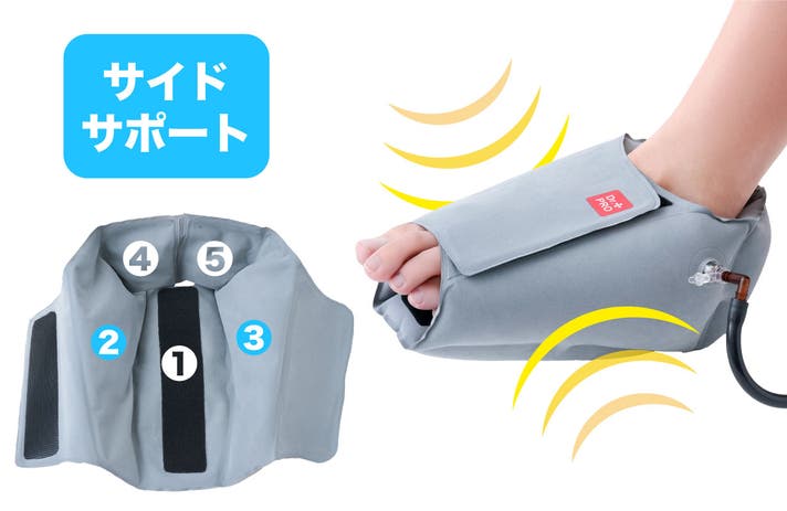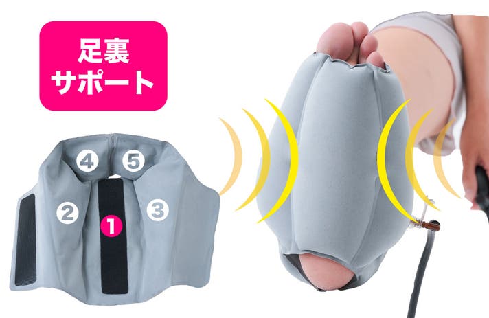 エアーポンプで空気を送り込むと、②、③の空気層に徐々に圧が入り、足を両サイドから程よくケアしてくれます♪
