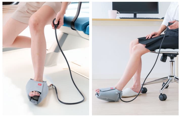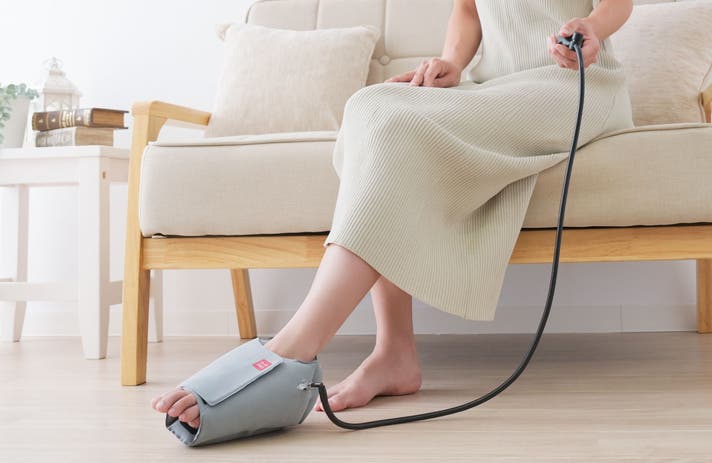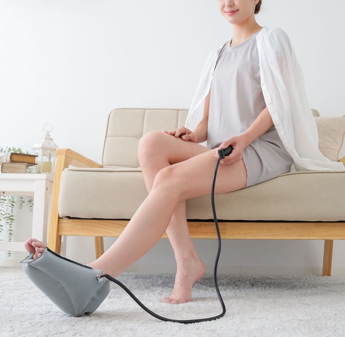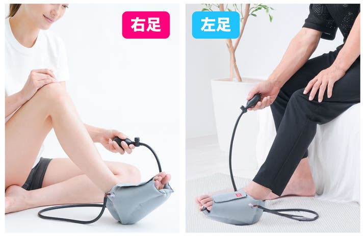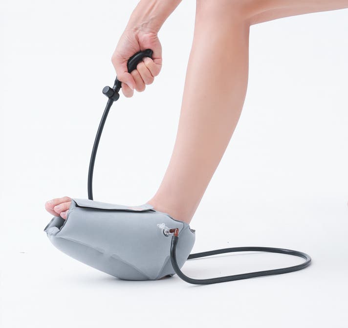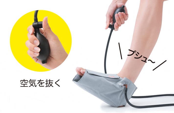 - エアーポンプで膨らませて、むぎゅ~と足を圧力ケア!お好みの圧に調節できる!